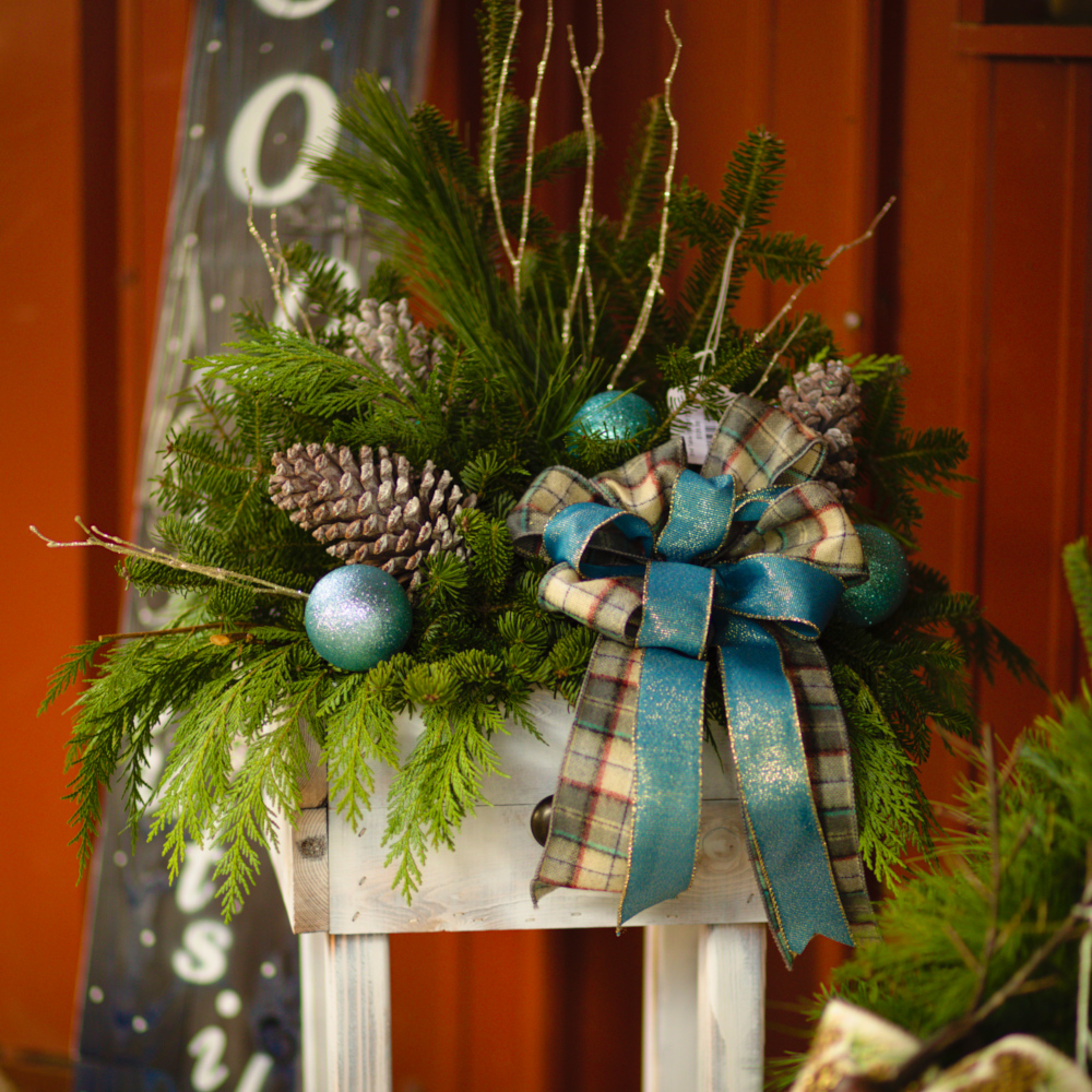 Design and decorate your choice of Porch Pot with fresh greens and provided decorations – including pinecones, bright berries, ornaments, and a classic bow. Additional items can be purchased as add-ons to make your wreath even more unique!